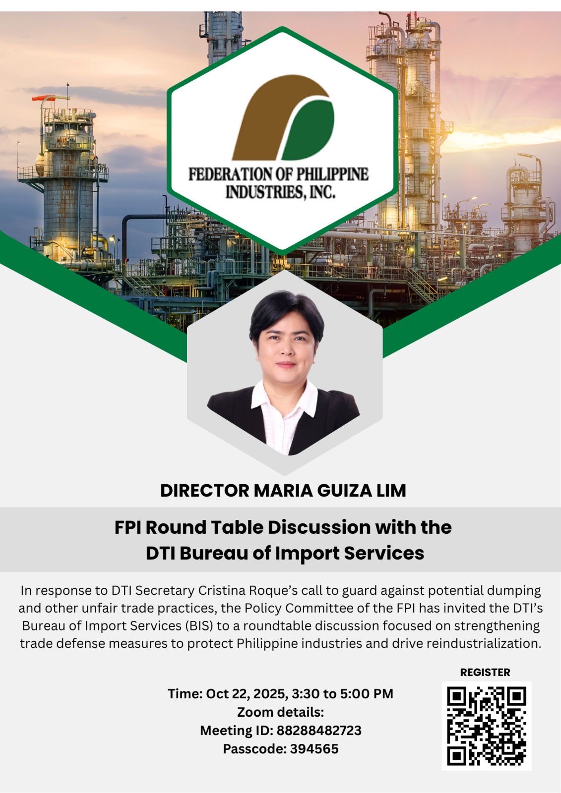 FPI, the Voice and Champion of the Philippine Industry, is an indispensable partner of the Philippine Government whose advice and counsel are sought to promote and develop globally-competitive industries.